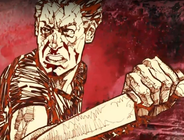 Peter holds up a knife, stating angrily, “You’re nothing like I hoped.”