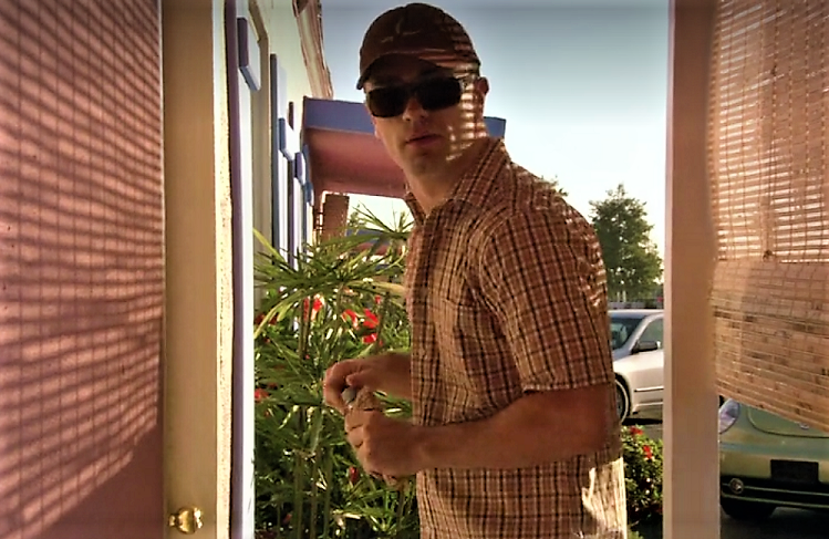 After discovering that Neil was near the Seven Seas Motel crime scene, Debra and Angel drive out to his home address, which is a dilapidated mobile home. They find a parked wood-paneled station wagon, which matches the description of the car that picked up Sheri Taylor before she was murdered. They observe a security camera watching them. Angel and Debra knock on the two doors but Neil escapes by crawling out the back door, bumping into a gnome on the way. He punctures their car’s tire, flees on foot, and speeds away in a different car.