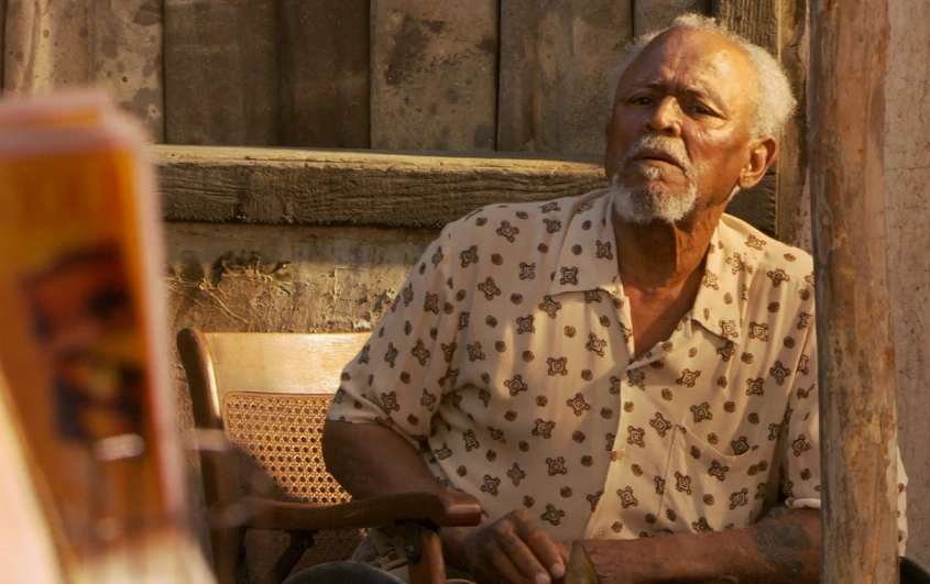 James Doakes has stolen Dexter Morgan's blood slides and needs to have them secretly analyzed. He flies to Haiti to arrange it with an old friend and fixer, Leones. As Doakes approaches Leones (who is facing away), an old man sitting nearby with a dog yells at Leones to get his attention.
