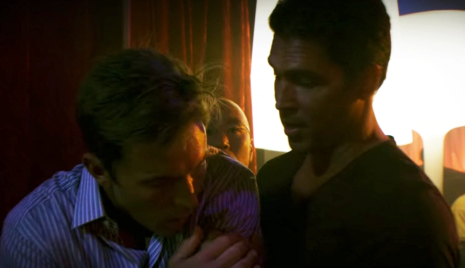 Angel Batista refuses Ouinn’s invitation to a new club so Quinn takes Vince Masuka instead. They sit at the bar watching the strippers as they pole dance to Latin music. The other men in the club are cheering and hollering. Quinn is drinking heavily and, apparently, in a good mood. Mauka is focused on the pole dancers and throws cash at them.