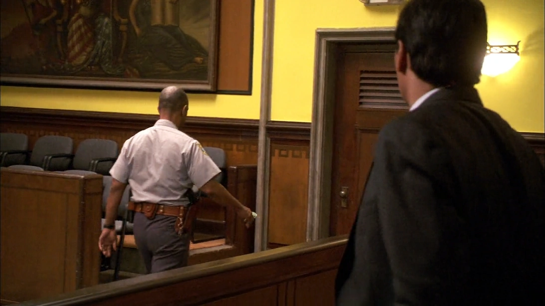 Miguel and Dexter have a plan to help Clemson Galt escape from the courthouse so they can kill him. Dexter’s role is to wait outside in the parking lot while Miguel meets with Galt in a holding room to slip him a key. Having accomplished his part, Miguel leaves Galt, but he immediately notices a third deputy heading toward the room.